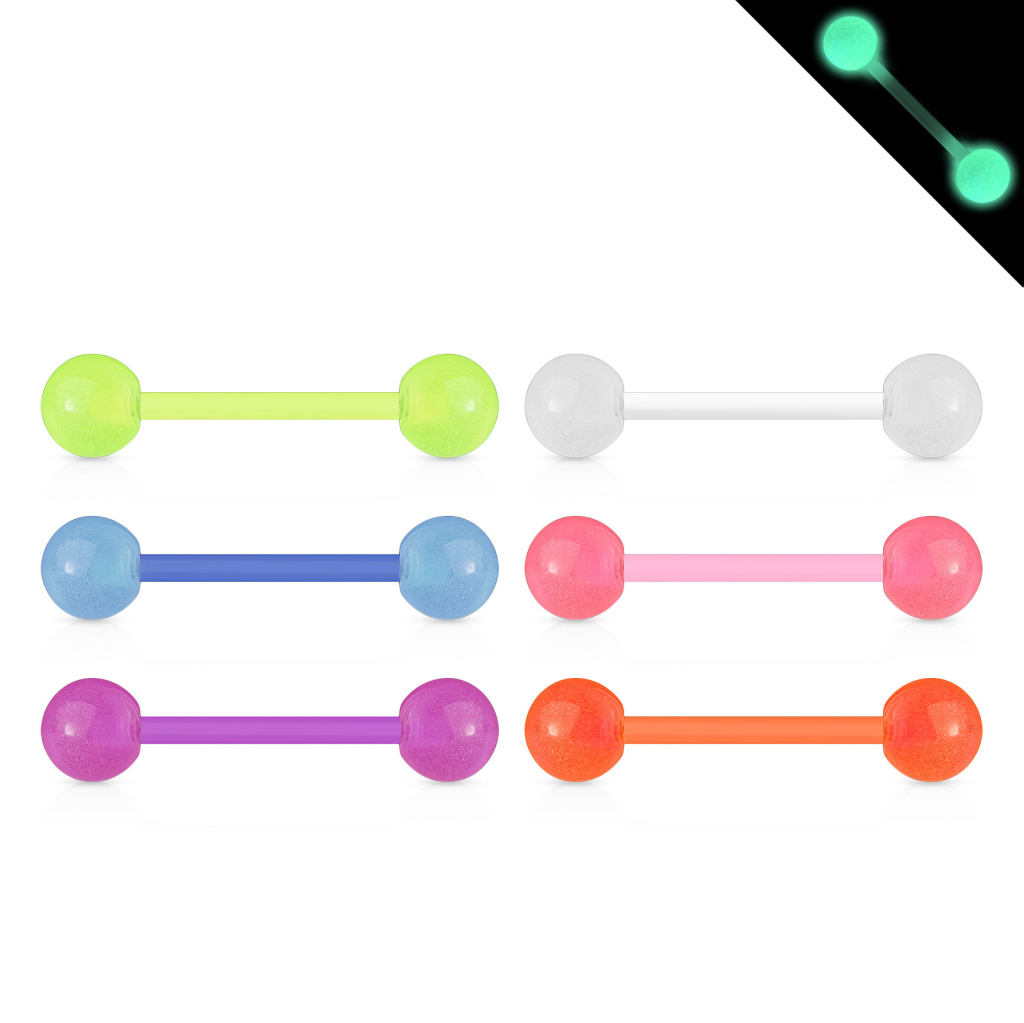 Tu veux un beau bijou pour piercing à la langue qui brille dans le noir ? Choisis parmi six couleurs disponibles !