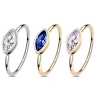 L'anneau se décline en plusieurs versions, ainsi il n'y pas que la pièce en laiton qui a été revêtue. Par exemple, si tu choisis l'anneau en or, elle est recouverte d'or 14 carats, ce qui augmente l'exclusivité de l'anneau. La pierre a également différentes couleurs, en fonction de la couleur que tu choisis pour l'anneau. Si nous continuons avec la bague en or, il y a une belle pierre ovale bleue à l'intérieur.