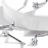 Mais maintenant, tu peux choisir entre plusieurs épaisseurs de fil, dont 0,8 mm. et 1 mm. Tu peux également choisir parmi plusieurs motifs : une pierre claire triangulaire par exemple. Le bijou est en titane, ce qui convient parfaitement aux nouveaux piercings, car le matériau peut être rendu si propre, évitant ainsi l’inflammation et d’autres saletés dans votre piercing.
