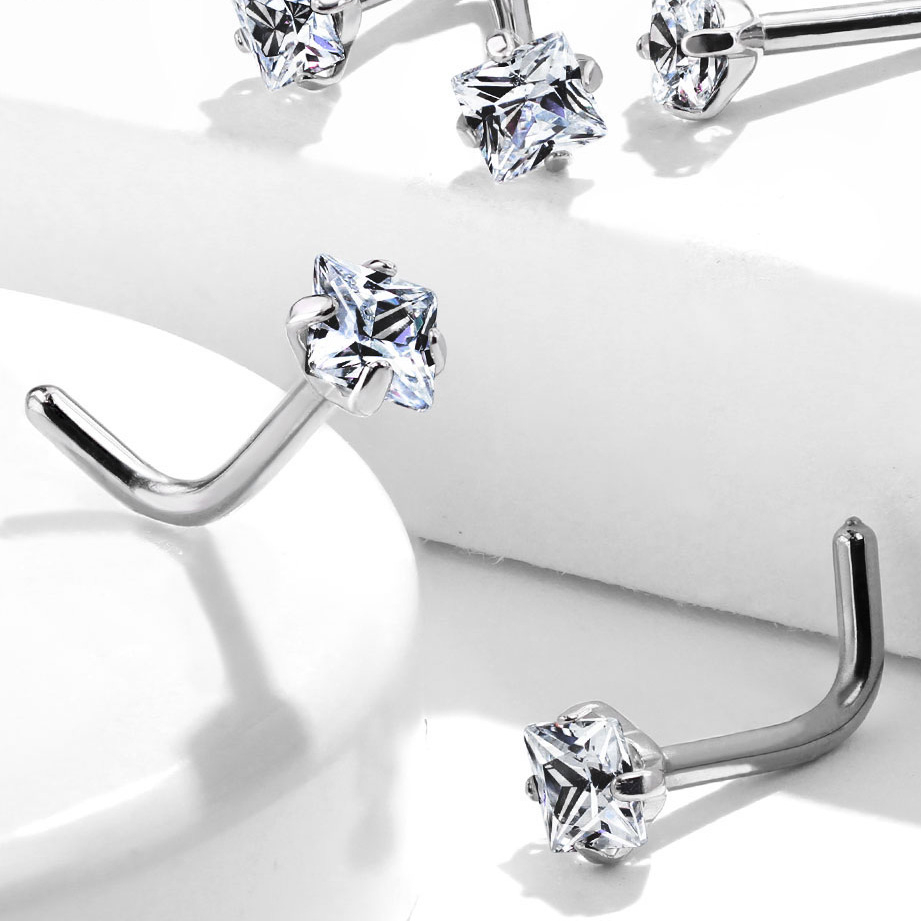 Mais maintenant, tu peux choisir entre plusieurs épaisseurs de fil, dont 0,8 mm. et 1 mm. Tu peux également choisir parmi plusieurs motifs : une pierre claire triangulaire par exemple. Le bijou est en titane, ce qui convient parfaitement aux nouveaux piercings, car le matériau peut être rendu si propre, évitant ainsi l’inflammation et d’autres saletés dans votre piercing.