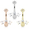 Un piercing au nombril ne doit pas toujours consister en une boule supérieure ronde et une légèrement plus grande en haut. Tu peux, comme dans ce cas, être un peu plus créatif et avoir un beau design. Le sommet a un filetage intérieur et il est également équipé d'une boule de fermeture en forme de fleur avec une petite pierre au centre. La fleur se trouve a 10 mm. de la petite abeille qui a de belles ailes de pierre. La tête de l'abeille est également en pierre. L'abeille légère a de jolis petits détails pour une apparence plus réaliste.