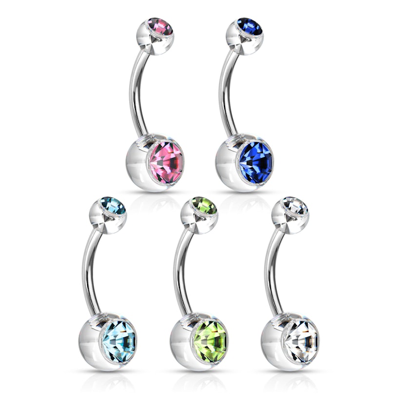 Nom: Piercing pour le nombril avec boules en acrylique et pierre