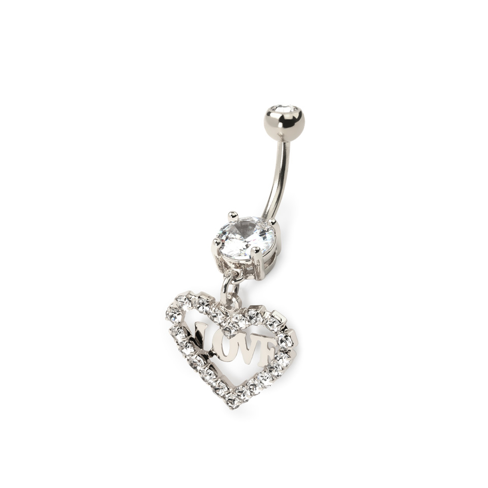 Piercing pour le nombril coeur en pendentif et love texte