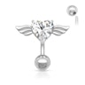 Voici l'un des symboles les plus populaires dans le monde des tatouages pour ton piercing au nombril. Nous parlons bien sûr du célèbre cœur ailé :-) Ce bijou est en acier chirurgical, le matériau le plus utilisé dans le monde du piercing, car il ne dégage pas de particules de nickel. Le bijou a en son centre une belle sculpture brillante, pour laquelle tu peux choisir sa couleur.