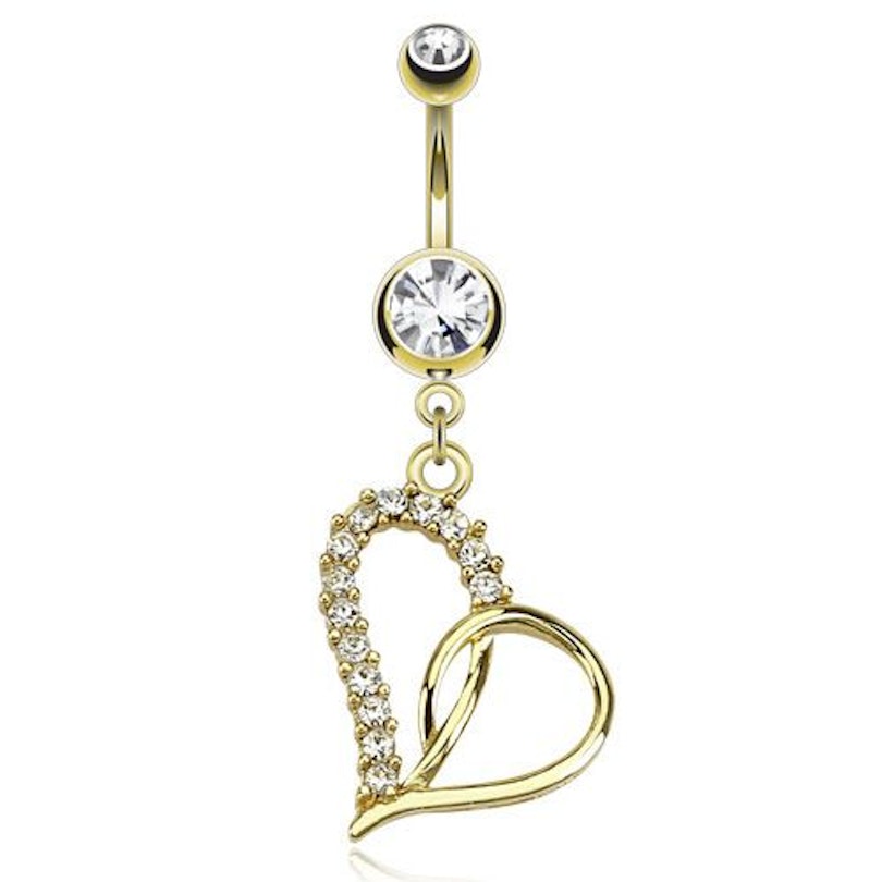 Piercing pour le nombril avec cœur et pierre claire revêtement en or