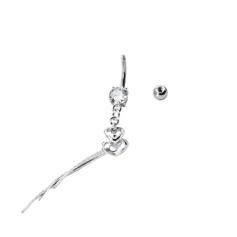 Nom: Piercing pour le nombril avec double pendentif coeur et pierre