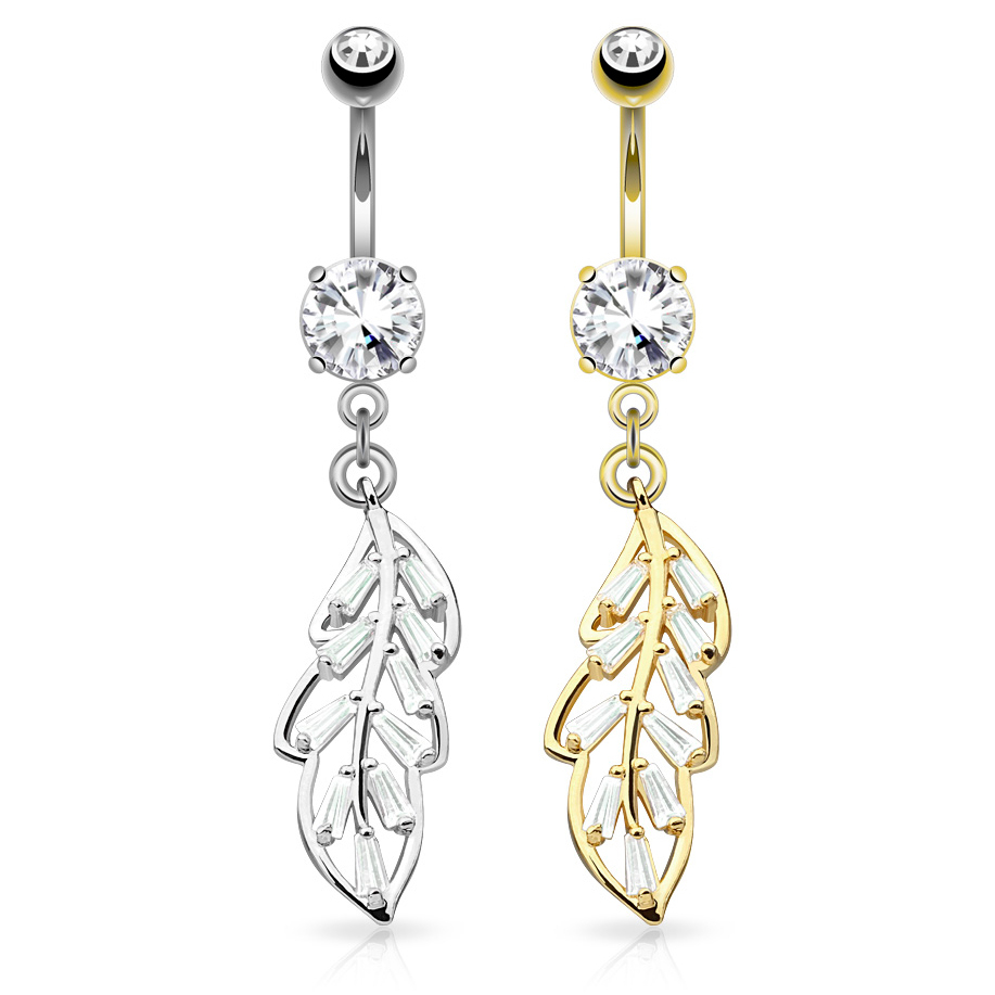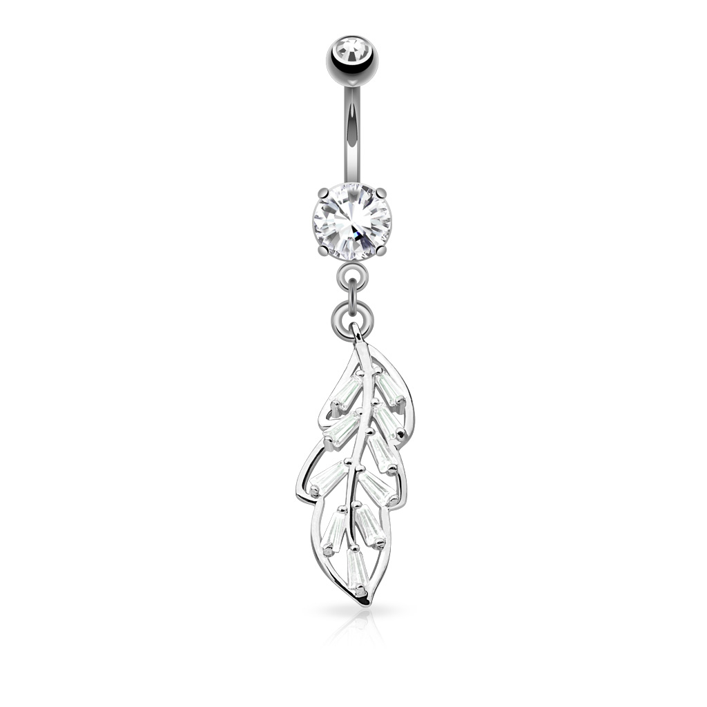 Nom: Piercing pour le nombril avec feuille en pierre en pendentif