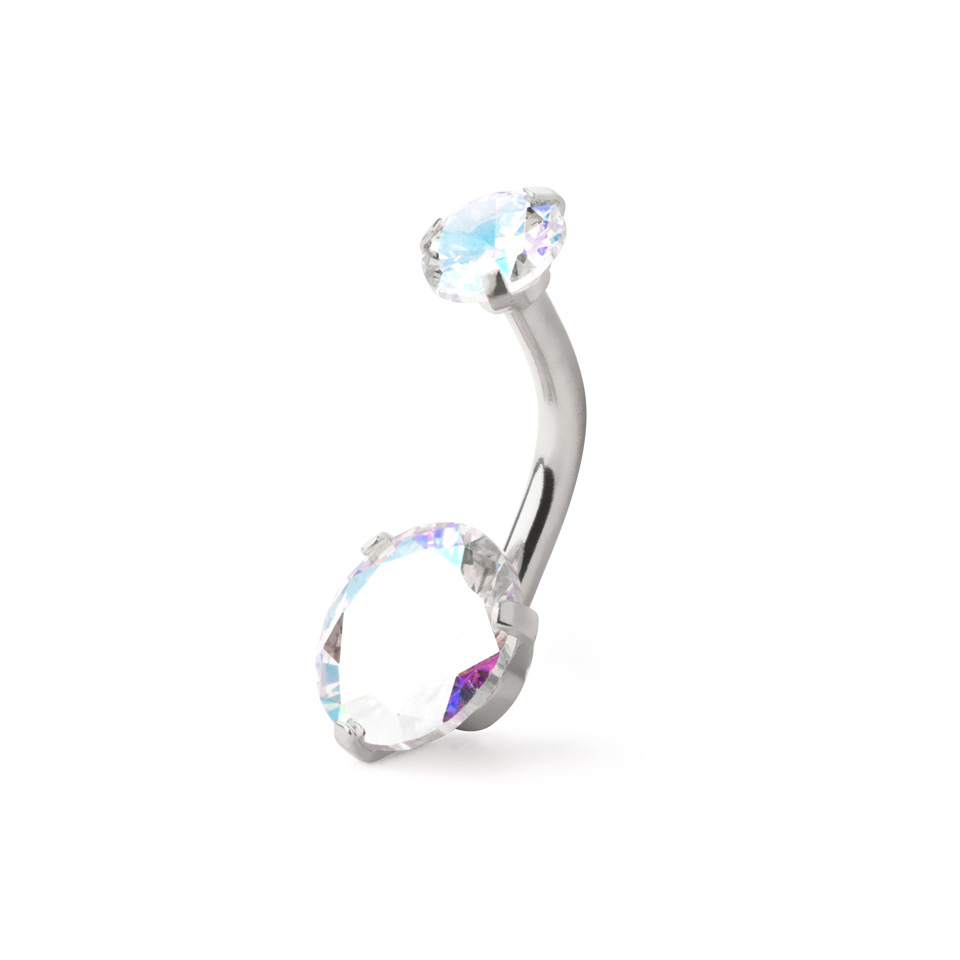 Piercing pour le nombril avec filetage interne et pierres multicolores