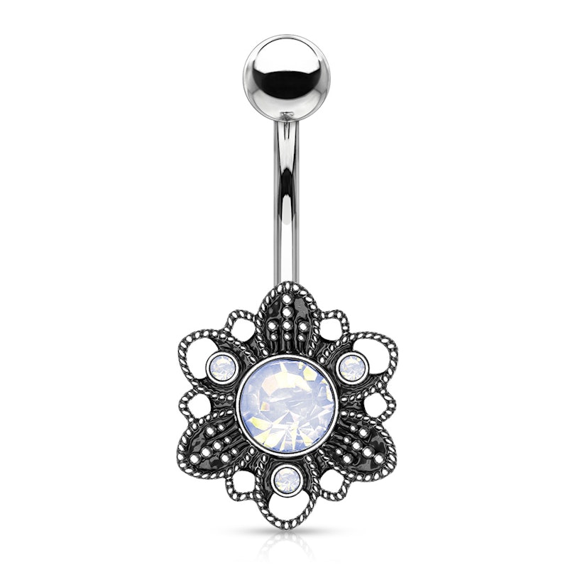 Nom: Piercing pour le nombril avec fleur antique ornée d'opalites