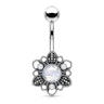 Piercing pour le nombril avec fleur antique ornée d'opalites