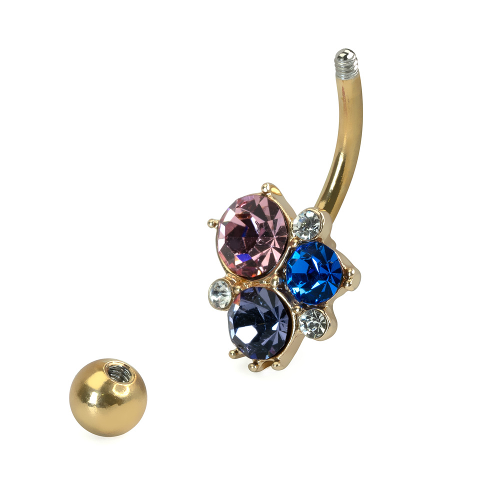Nom: Piercing pour le nombril avec groupe de pierres aux couleurs vives