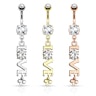 Piercing pour le nombril avec love en pendentif orné de pierres