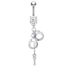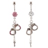 Original et surtout très sexy, ce bijou pour piercing au nombril a une grande pierre dans sa boule inférieure et quelques menottes et une clé dans son pendentif. Les menottes sont décorées de rose vif ou de blanc, à toi de faire ton choix. La couleur que tu choisiras sera également celle de la luminosité de la boule inférieure.