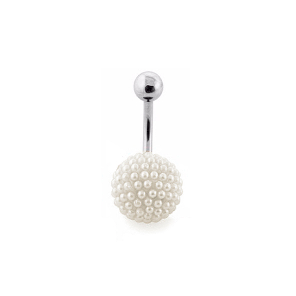 Les bijoux pour le piercing au nombril et les boules nacrées sont incroyablement beaux et populaires. Ce bijou ne fait pas exception, ni ses nombreuses boules de perles qui décorent la boule du bas. La tige et la boule supérieure de ce bijou sont en acier chirurgical, tandis que la boule inférieure est en argile colorée à laquelle ont été ajoutées des boules qui ont été mises sous pression pour une excellente tenue. La couleur de l'argile est la même que celle des petites perles avec une finition nacrée.