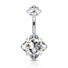 Piercing pour le nombril avec pierres carrées et filetage interne