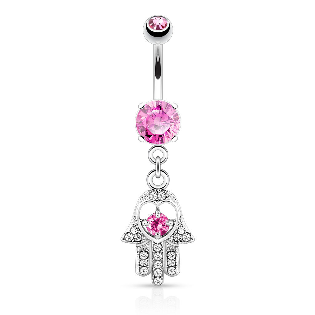 Nom: Piercing pour le nombril avec pierres et pendentif hamsa