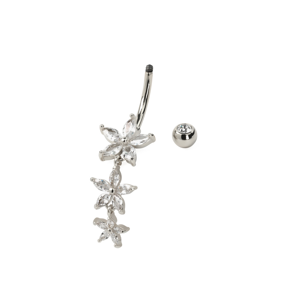 Piercing pour le nombril avec trois fleurs de marquise en pendentif
