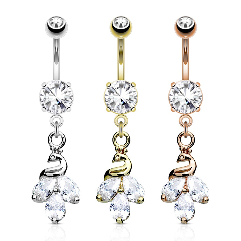 Nom: Piercing pour le nombril avec un paon en pendentif