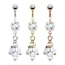 Le paon est un animal très coloré. Il utilise ses plumes de queue flashy et colorées pour attirer une femelle. Ce piercing au nombril a un paon est un peu plus discret. Les plumes de la queue du paon ont été remplacées par trois pierres claires en forme de goutte, qui sont magnifiques. Avec ce piercing au nombril, tu pourras attirer ton partenaire en utilisant les magnifiques plumes du paon. Le bijou a été recouvert d'or 14 carats, pour plus de beauté.