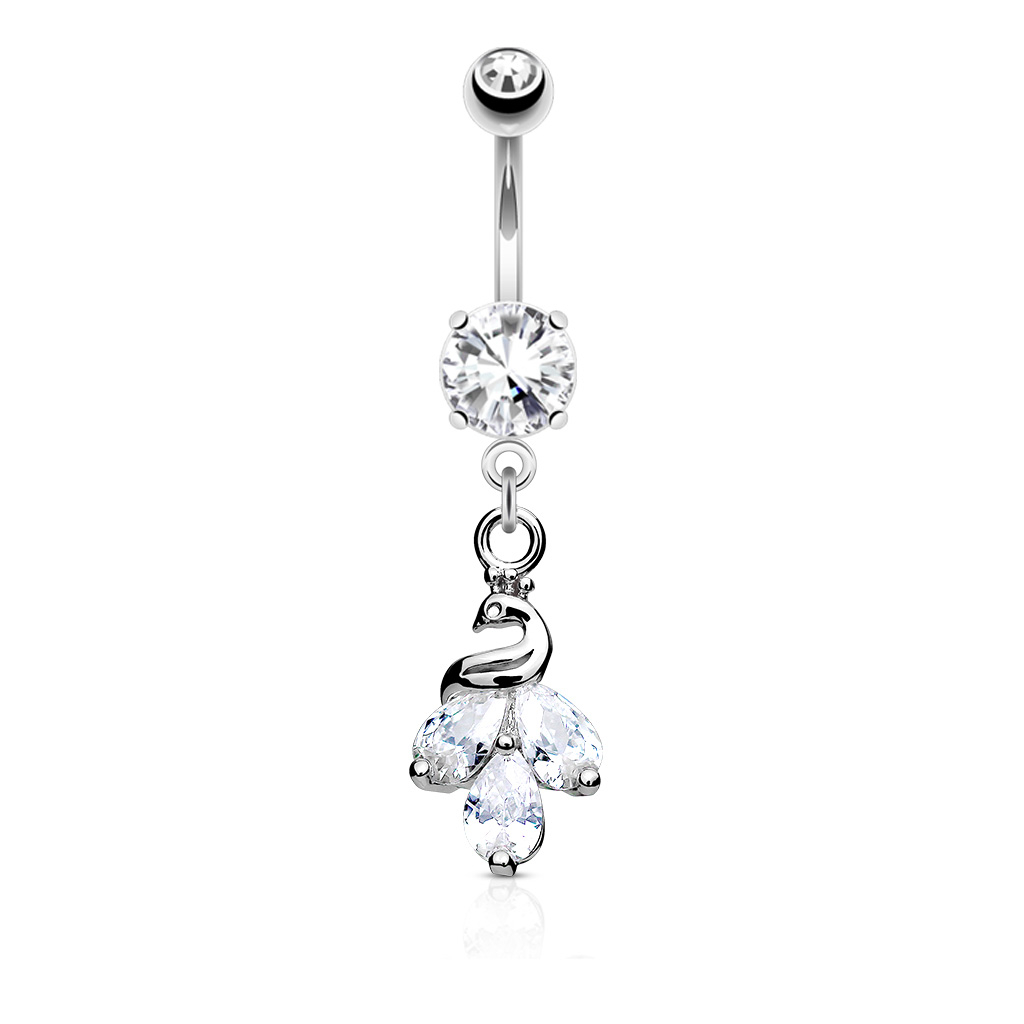 Nom: Piercing pour le nombril avec un paon en pendentif