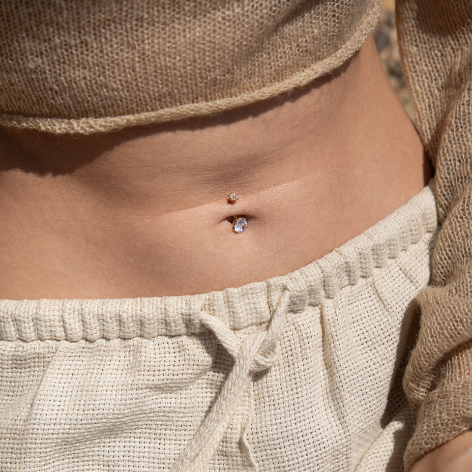 Piercing pour le nombril avec une grosse pierre et une fleur