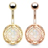 La tige de ce bijou est en acier chirurgical, tandis que la structure de la partie inférieure est en laiton. De plus, nous avons le plaisir de te proposer ce bijou dans deux modèles différents : en couleur dorée classique et en couleur rougeâtre.
