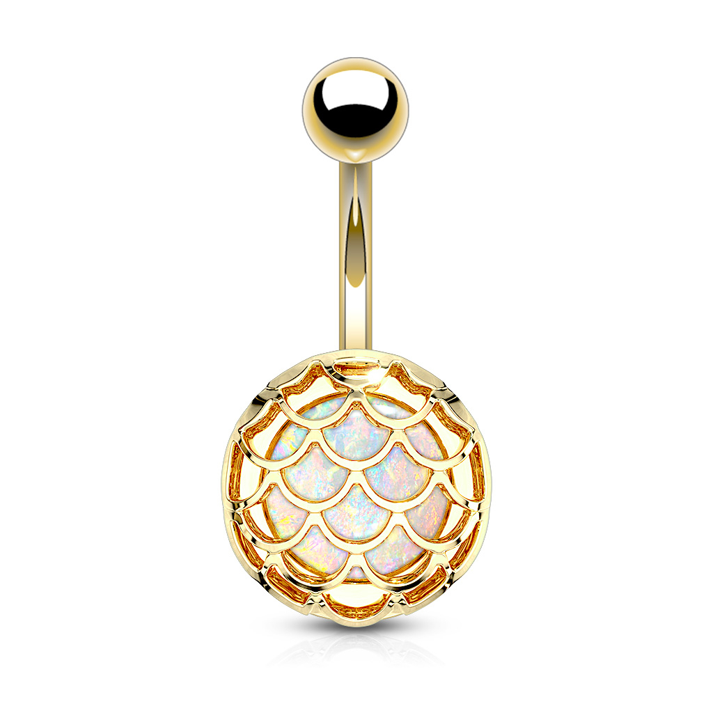 Piercing pour le nombril avec une opale enrobée d'un bouclier