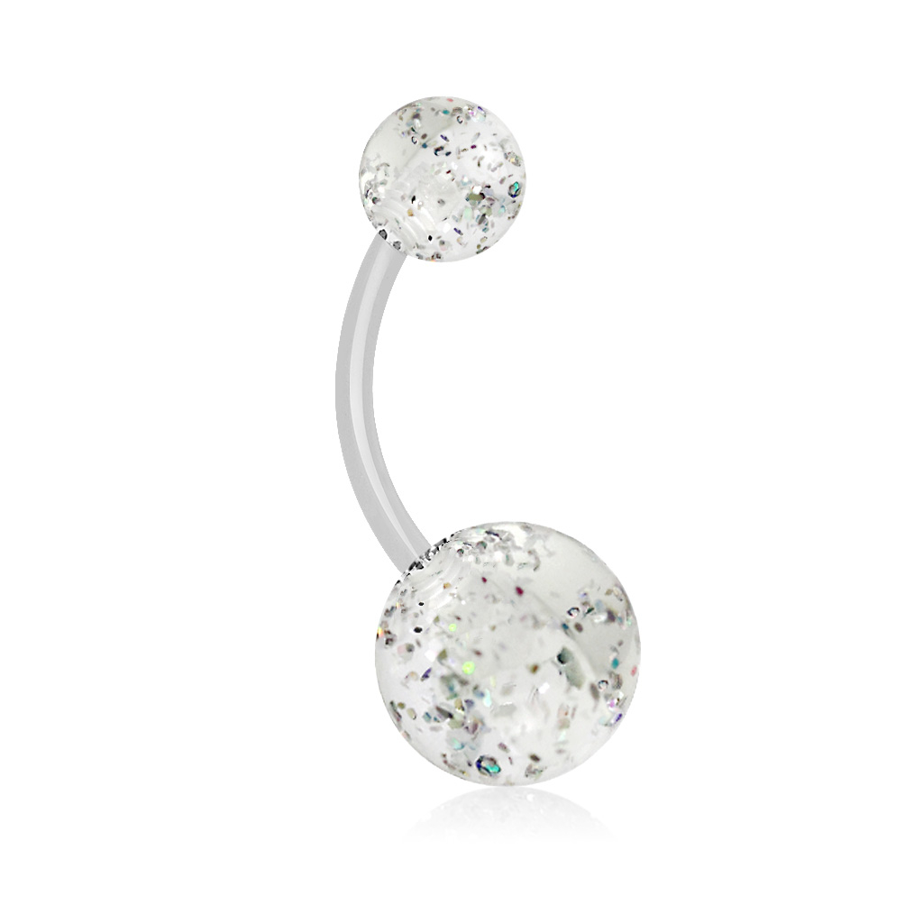 Nom: Piercing pour le nombril en acrylique avec boules pailletées
