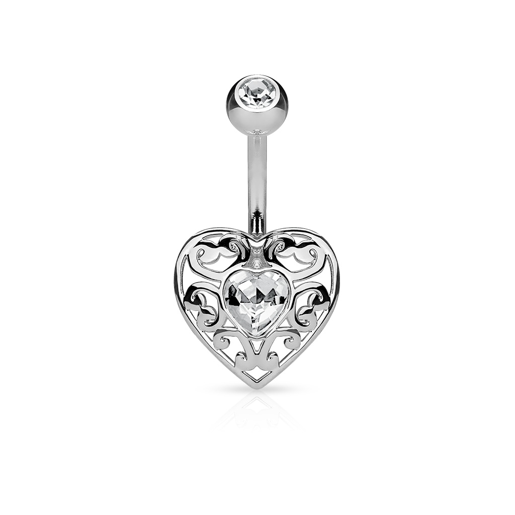 Piercing pour le nombril en forme de cœur avec cœur en pierre