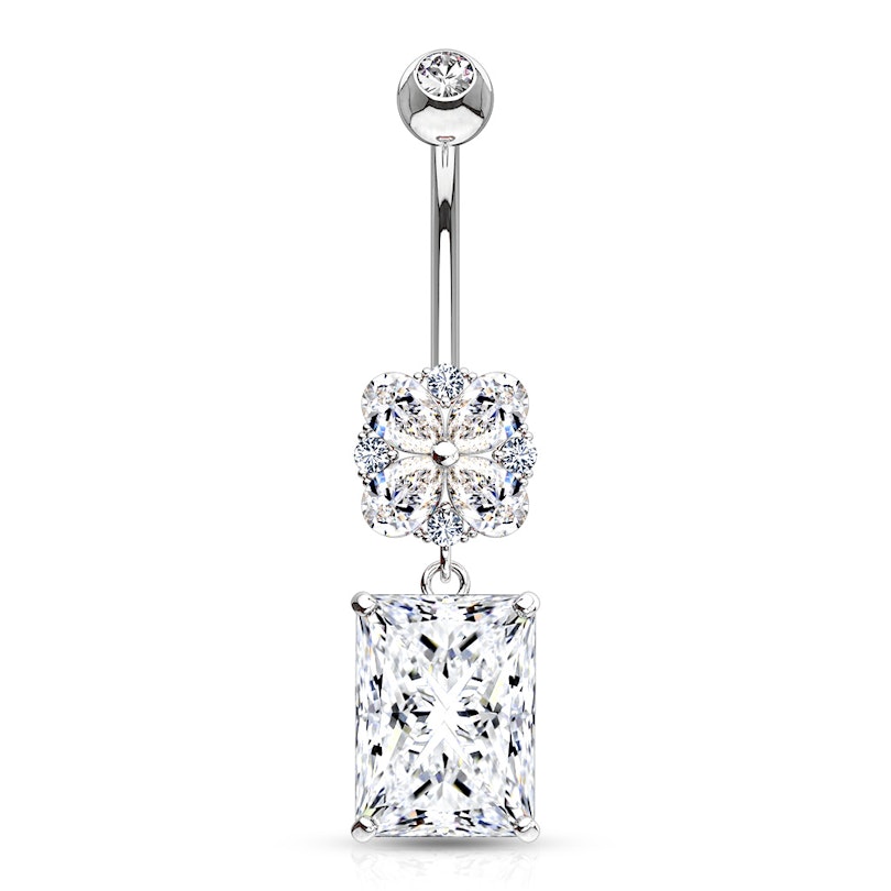 Piercing pour le nombril en or 14 carats avec fleur et pierre carrée