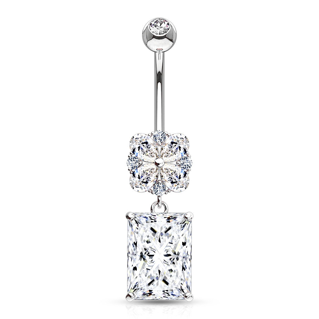 Piercing pour le nombril en or 14 carats avec fleur et pierre carrée