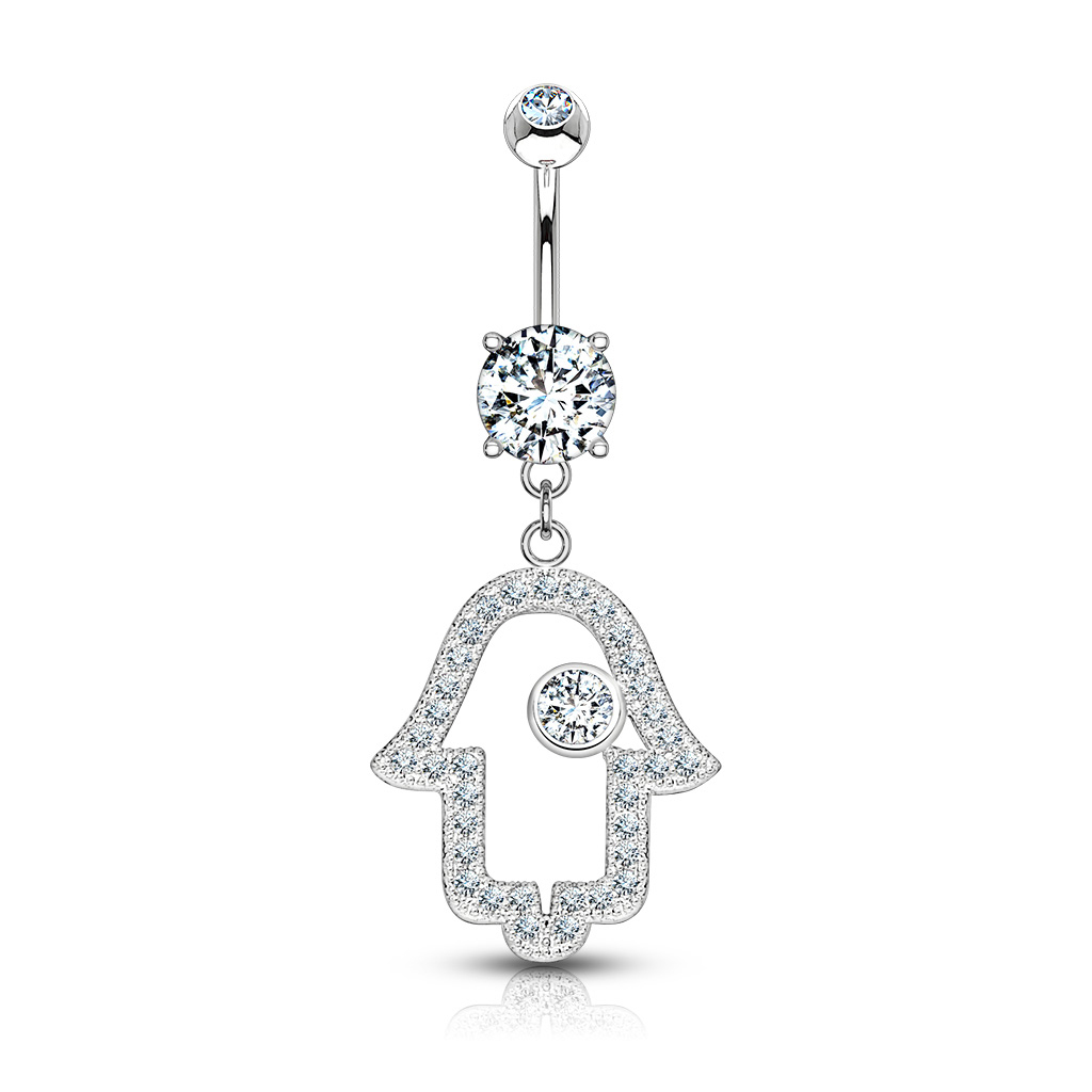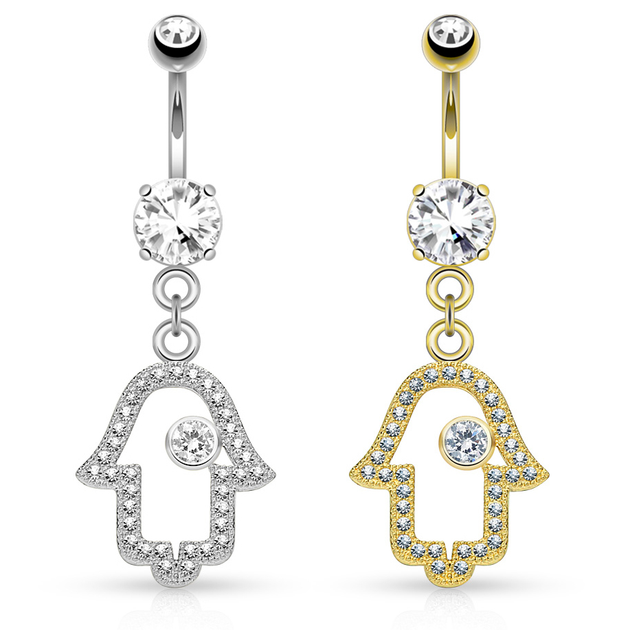 Nom: Piercing pour le nombril en or 14 carats avec la main de fatma
