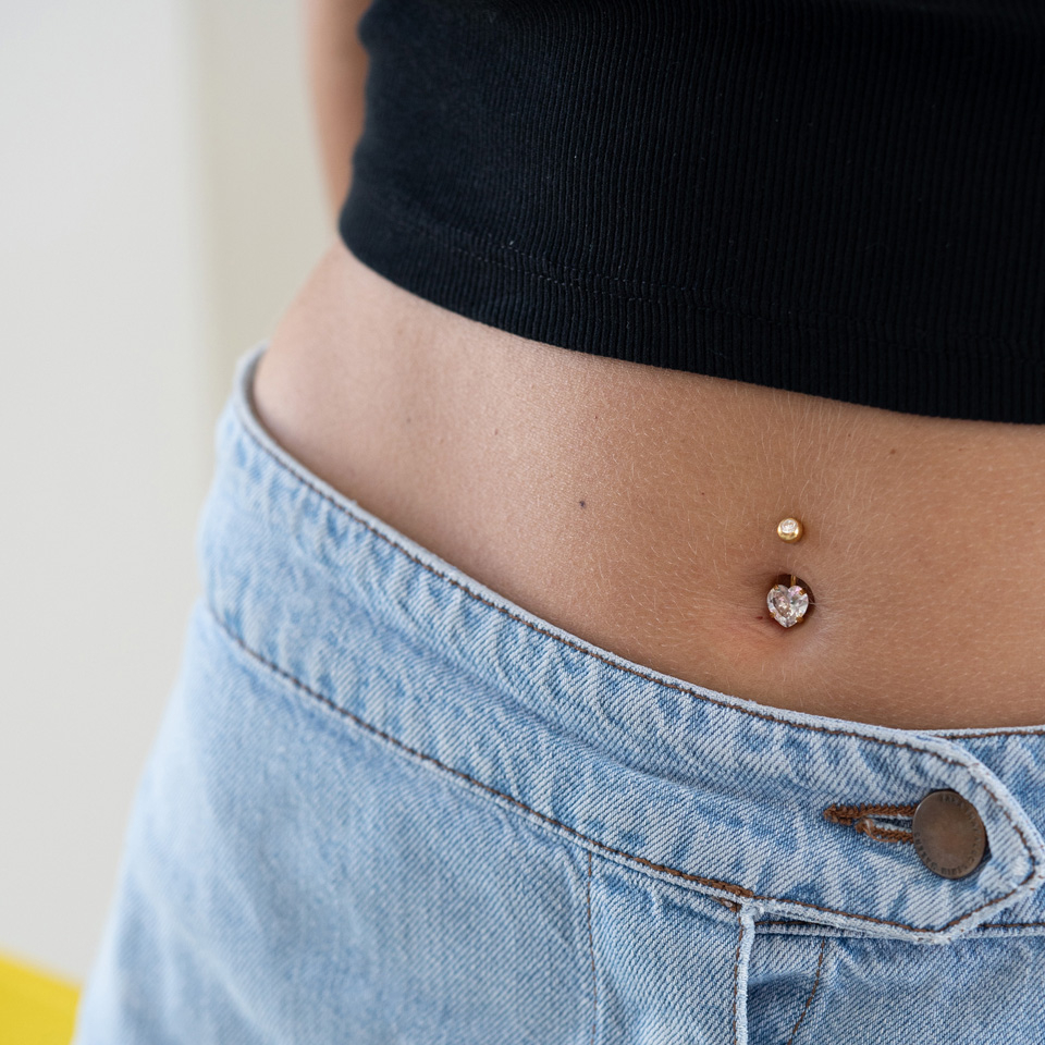 Piercing pour le nombril en plusieurs couleurs avec un coeur