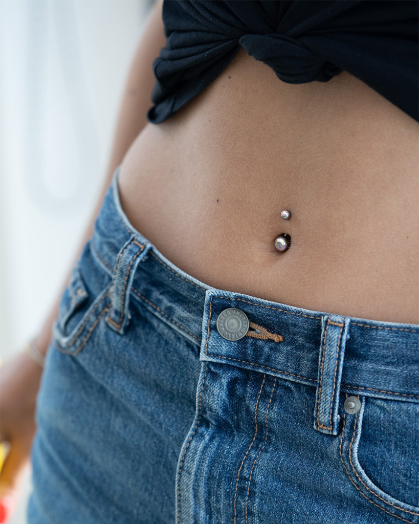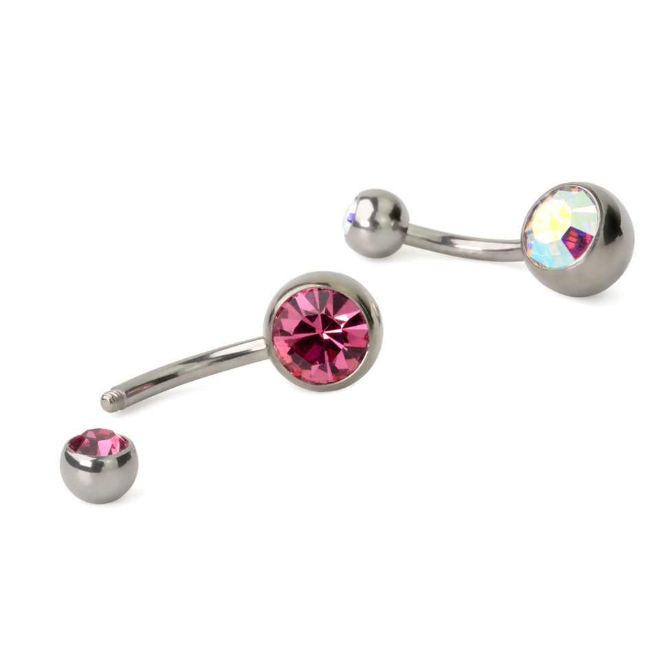 Piercing pour le nombril en titane avec deux pierres