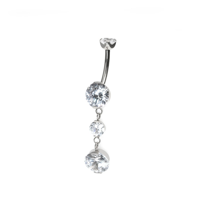 Le superbe bijou que nous te présentons est un piercing pour le nombril en titane avec un pendentif avec quatre boules. Chaque boule est ornée d'une pierre à serti clos. La longueur totale de la partie inférieure de ce bijou, autrement dit, la distance qui sépare la boule du haut de celle du bas, est d'un peu plus de 3 cm. En outre, ce bijou est muni d'un filetage interne, ce qui signifie qu'il est très facile à mettre en place. Il te suffit de dévisser la partie supérieure, d'insérer la tige dans ton trou de piercing et d'y revisser délicatement la partie supérieure. Enfin, ce bijou est fabriqué en titane, un matériau hypoallergénique et waterproof. Tu peux donc le porter pour profiter pleinement de tes journées à la piscine.