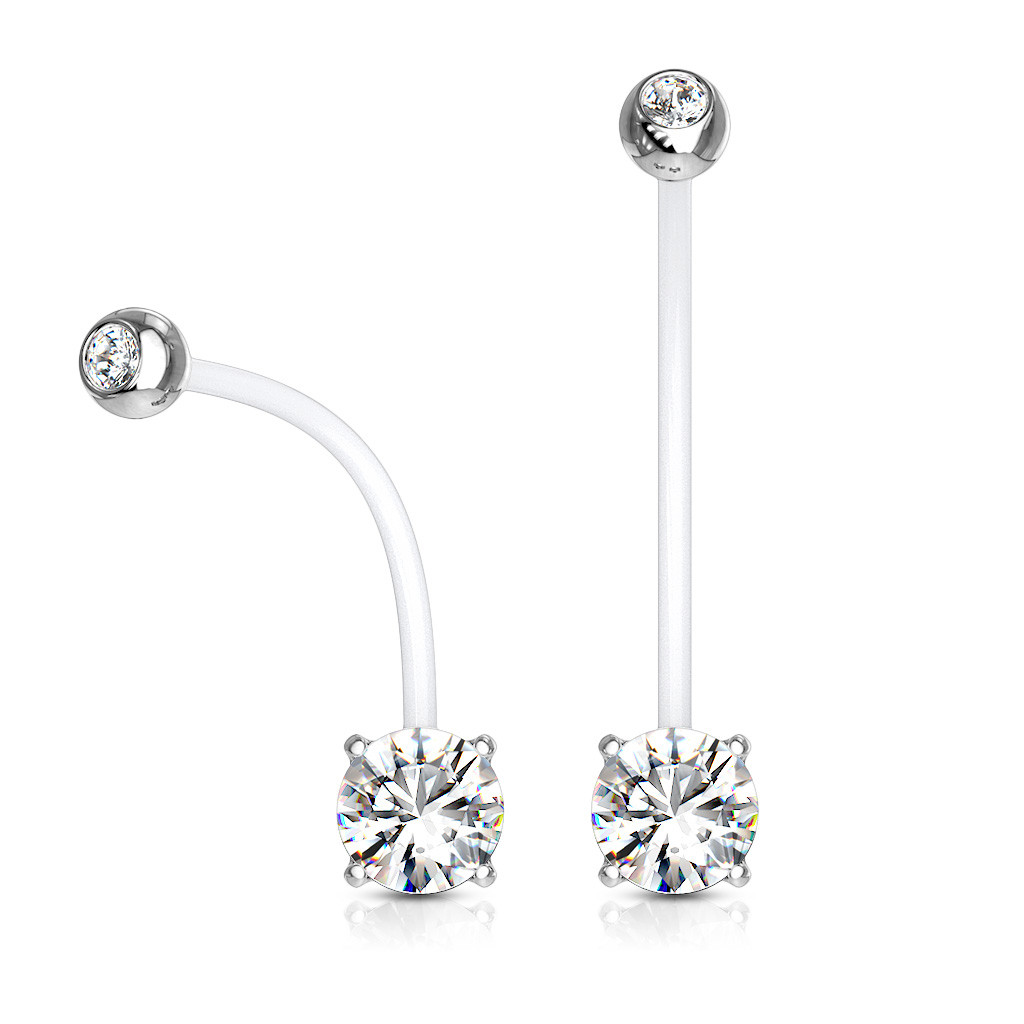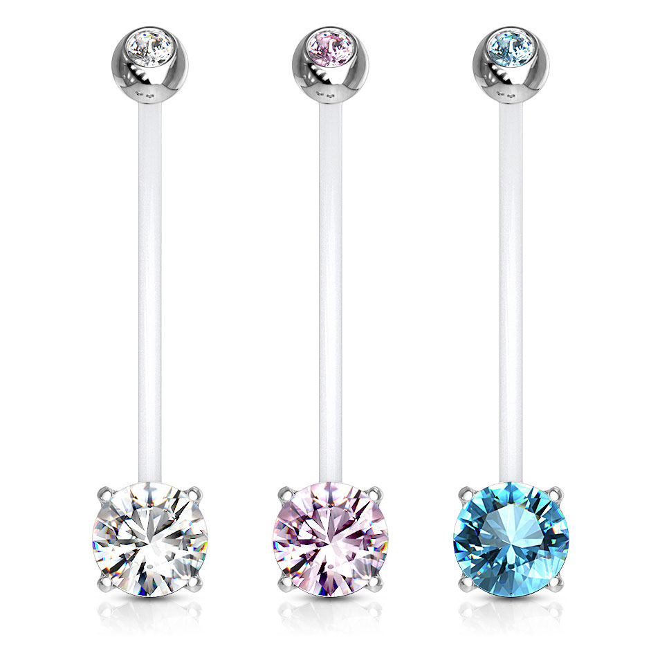 Ce piercing au nombril peut être utilisé pendant la grossesse. Cela est dû au matériau constituant la tige, appelé PTFE. Le matériau est si doux qu'il peut se plier et se former avec le corps. Cela permet à la tige de suivre les formes de ton ventre au fil de sa croissance pendant la grossesse.