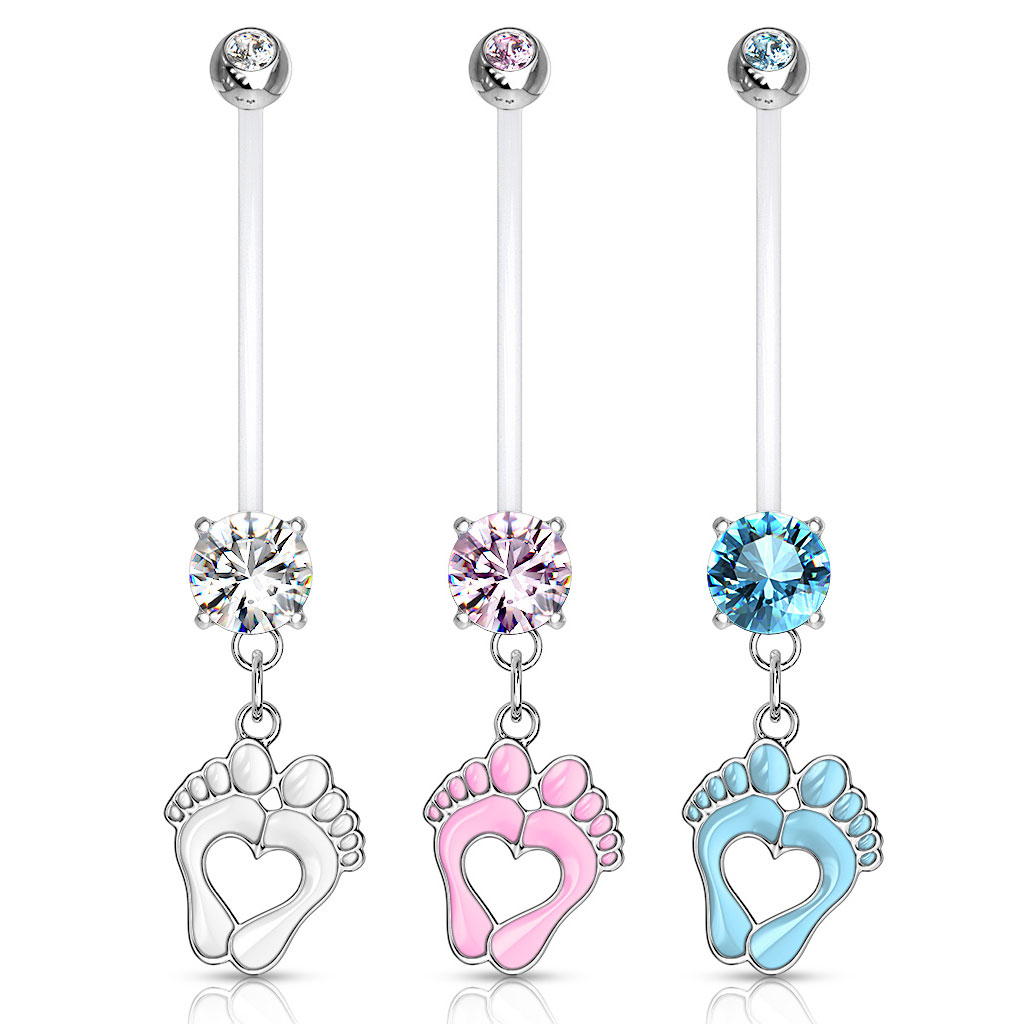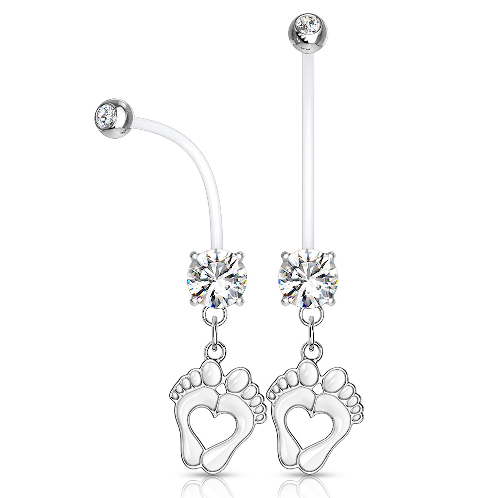 Nom: Piercing pour le nombril femme enceinte avec pieds et coeur
