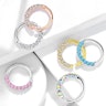 Comme tu l'as sûrement déjà remarqué, la partie visible inférieure du bijou est dotée de plusieurs pierres. Celles-ci ornent l'ensemble de cette partie en forme de demi-cercle qui ne sera pas située dans ton nez ou dans ton oreille. Tu peux choisir la couleur des pierres en zircone que tu préfères, par exemple, turquoise ou rose. Note toutefois que pour les modèles en or rose et en or jaune, les pierres seront toujours de couleur transparente, de sorte à avoir un rendu magnifique.