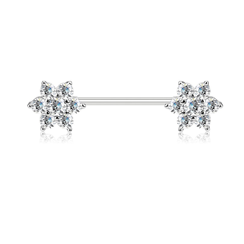 Ce piercing au sein est super fin et élégant avec une fleur des deux côtés de la tige.
