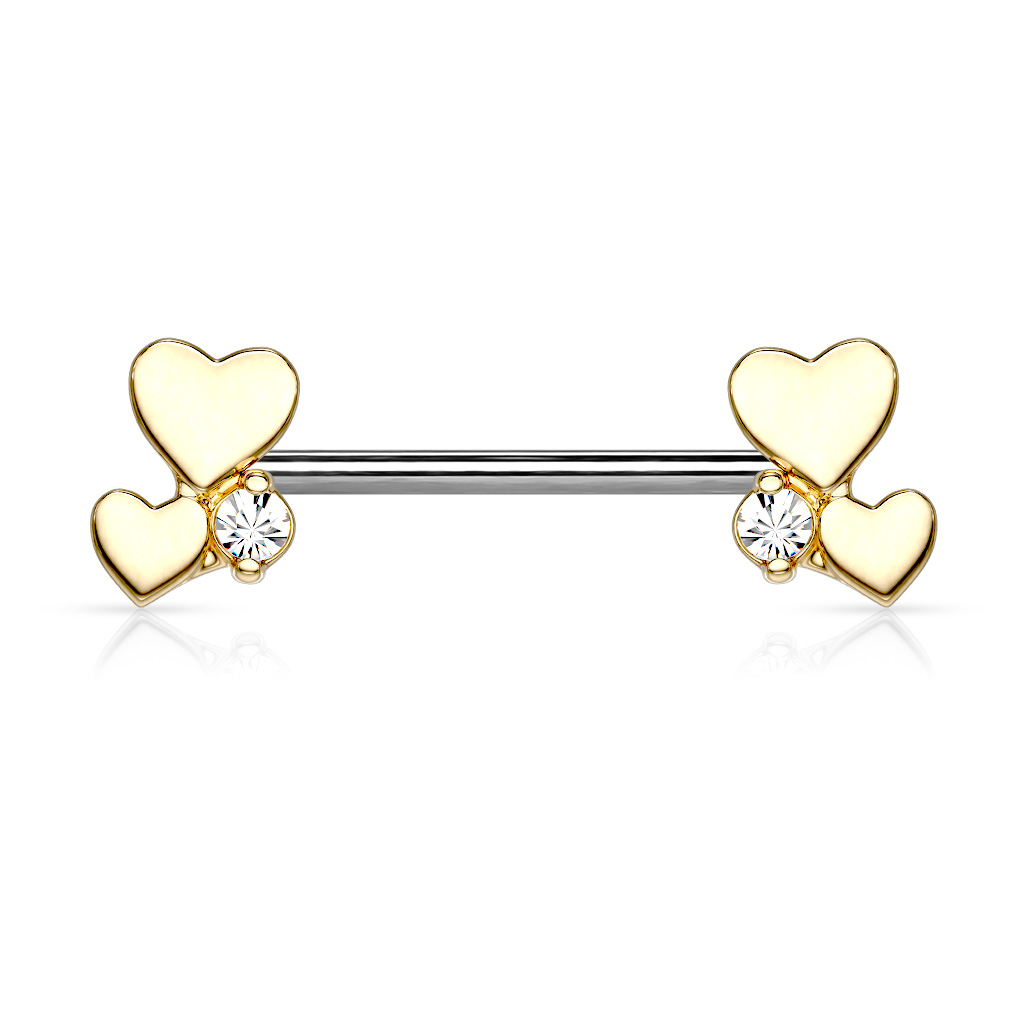 Piercing pour le téton avec deux coeurs et une pierre à chaque extrémité