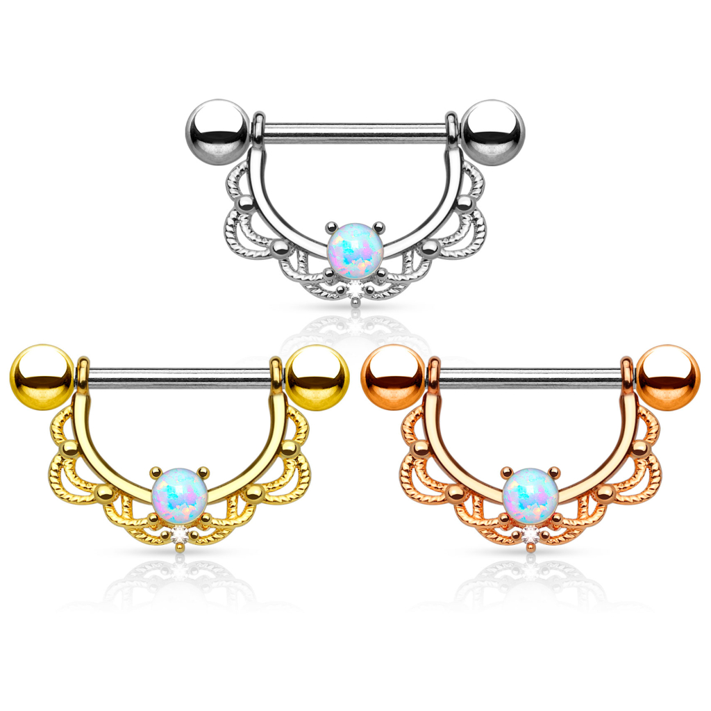 Piercing pour le téton avec filigrane et opales
