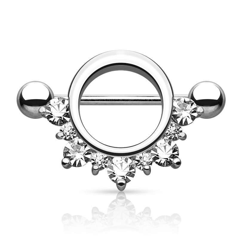 C'est le bijou parfait pour ceux qui recherchent un bijou beau et féminin à la fois pour leur piercing au mamelon. Ce bijou au design très classique est fabriqué en acier chirurgical. Il a la forme d'un anneau argenté et, lorsqu'il est placé dans le piercing, il encadre le mamelon.