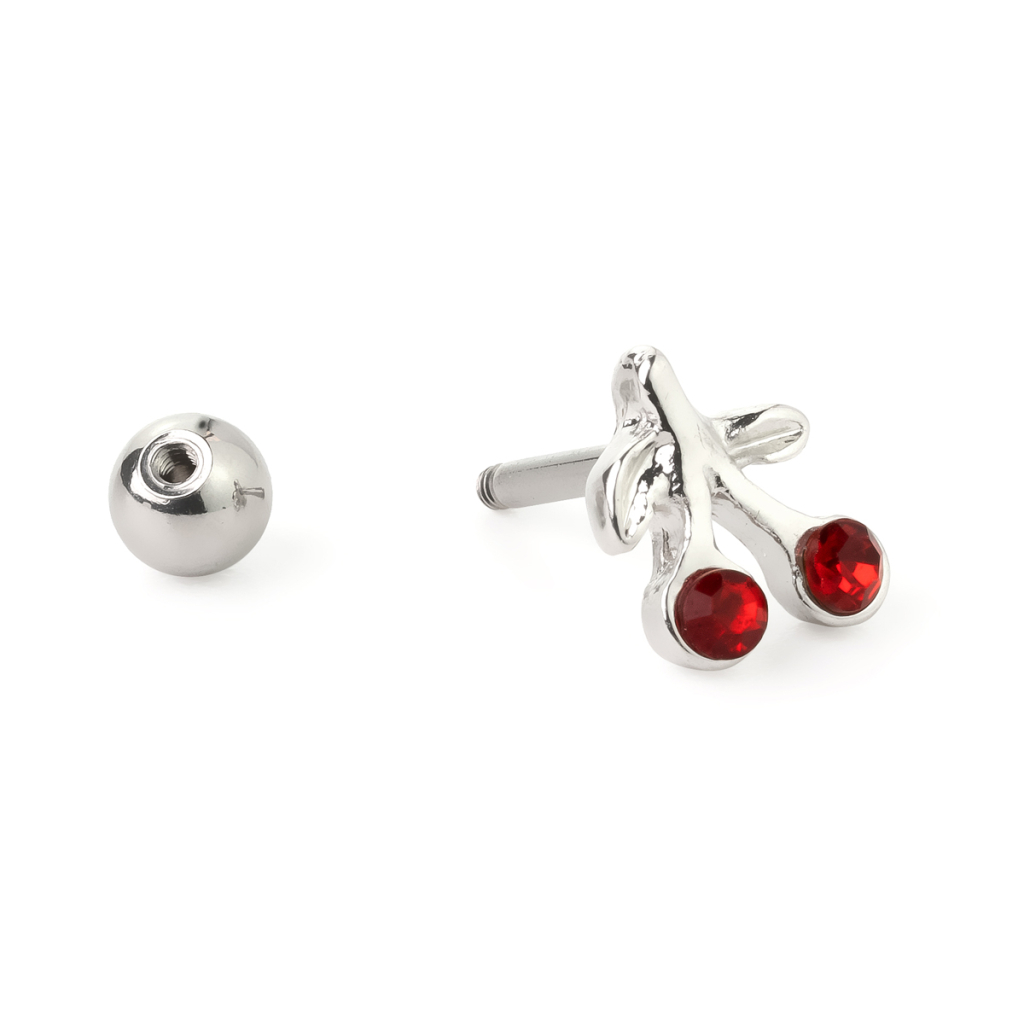La tige de ce bijou mesure 6 mm, il convient donc à la plupart des piercings. Sur le devant, tu as deux jolies petites cerises de couleur rouge vif.