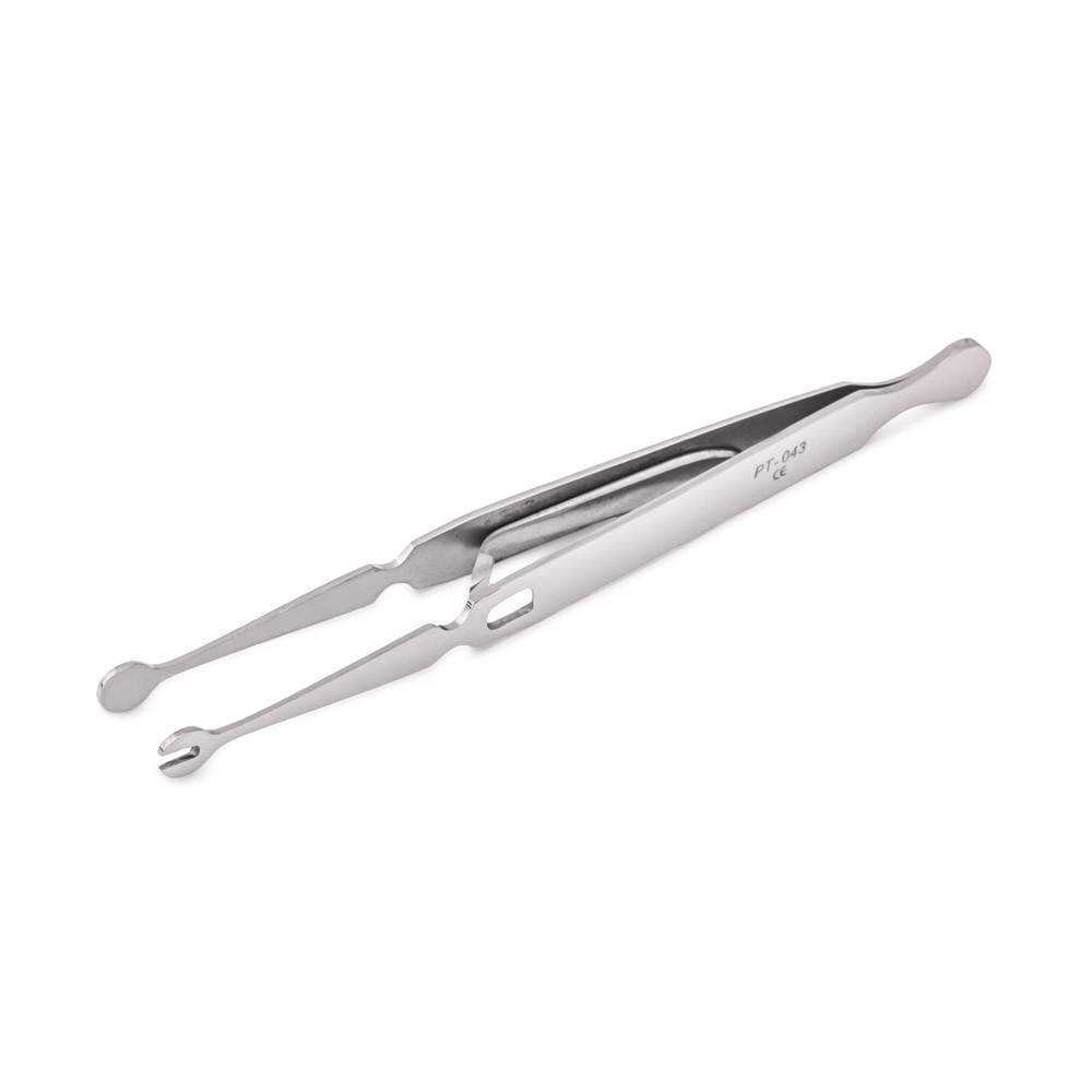 Voici un outil essentiel pour la prise en main d'un piercing au labret, en particulier pour le tragus ou pour d’autres piercings dans des zones compliquées. Avec l'aide de ces pinces avec une griffe à une extrémité et une plaque circulaire plate à l'autre, tu peux tenir les labrets très facilement, en particulier dans les zones plus difficiles.