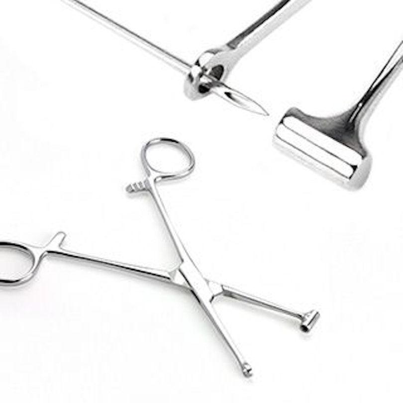 Si vous êtes un perceur professionnel, vous devez avoir ces grandes pinces avec un design pratique pour percer le tragus. L'outil mesure 6 cm de long et possède un trou de 3 mm.