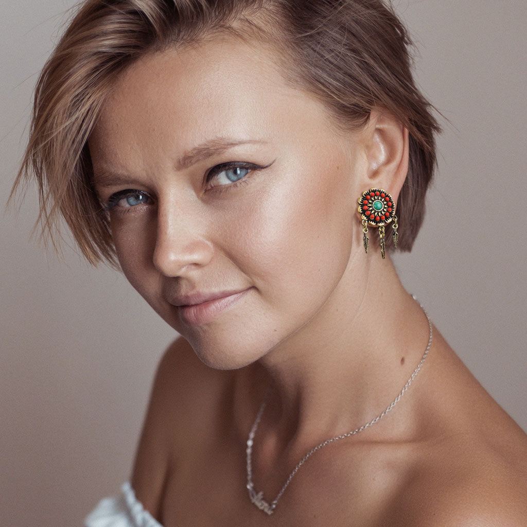 Ce plug a un décor qui représente une fleur. La fleur au centre a une belle perle en acrylique turquoise qui va très bien avec les perles rouges sur le contour. Une deuxième petite bordure est dessinée autour des perles rouges. Cette bordure se compose toutefois de petites feuilles qui font vraiment ressortir le motif de la fleur. En plus de cette fleur et de ses petits détails, ce plug a également trois petites plumes sous le devant. Les plumes pendent librement, elles bougeront avec tes mouvements.