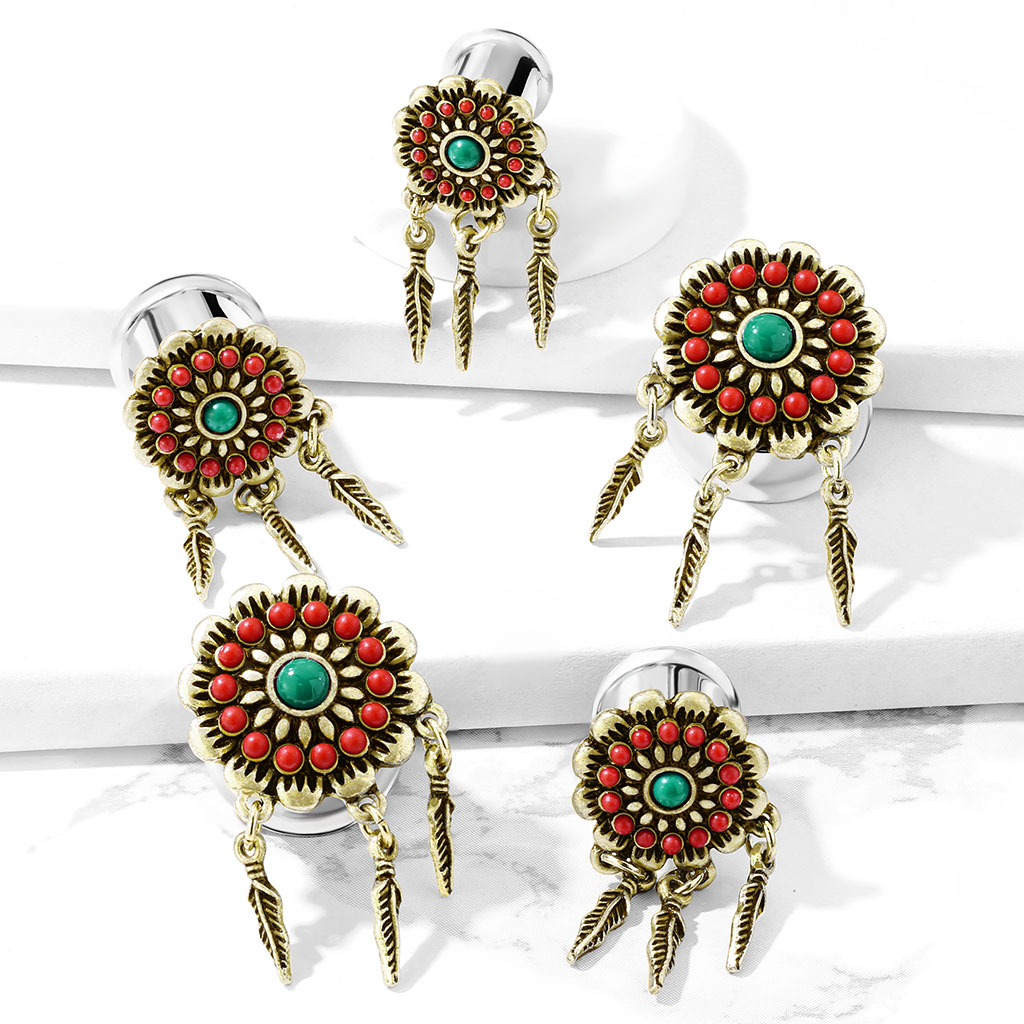 Plug avec des fleurs et des plumes en pendentif