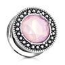 Ce plug est recouvert d’argent antique sur la face avant. De là vient la couleur sombre que tu peux voir sur la photo du haut. La couleur foncée fait bien ressortir la pierre rose. Autour de la pierre rose, il y a de nombreuses petites boules qui donnent au plug de la profondeur et le rend très joli à regarder.