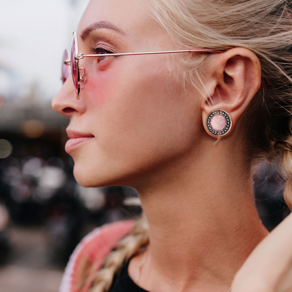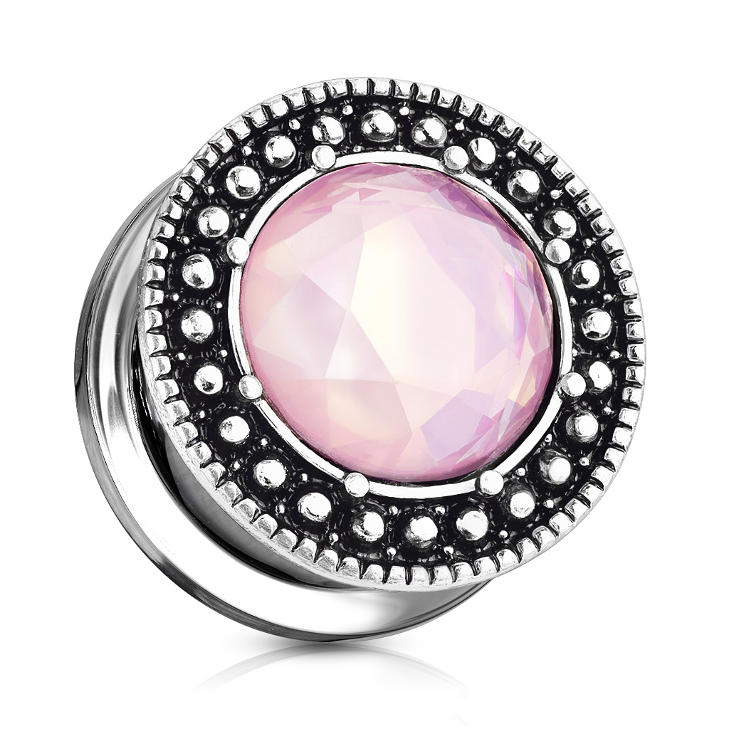 Plug avec un front oxydé et une jolie pierre rose