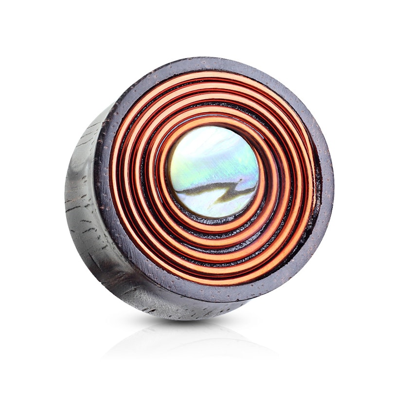 Nom: Plug en bois avec de la nacre et un fil de cuivre